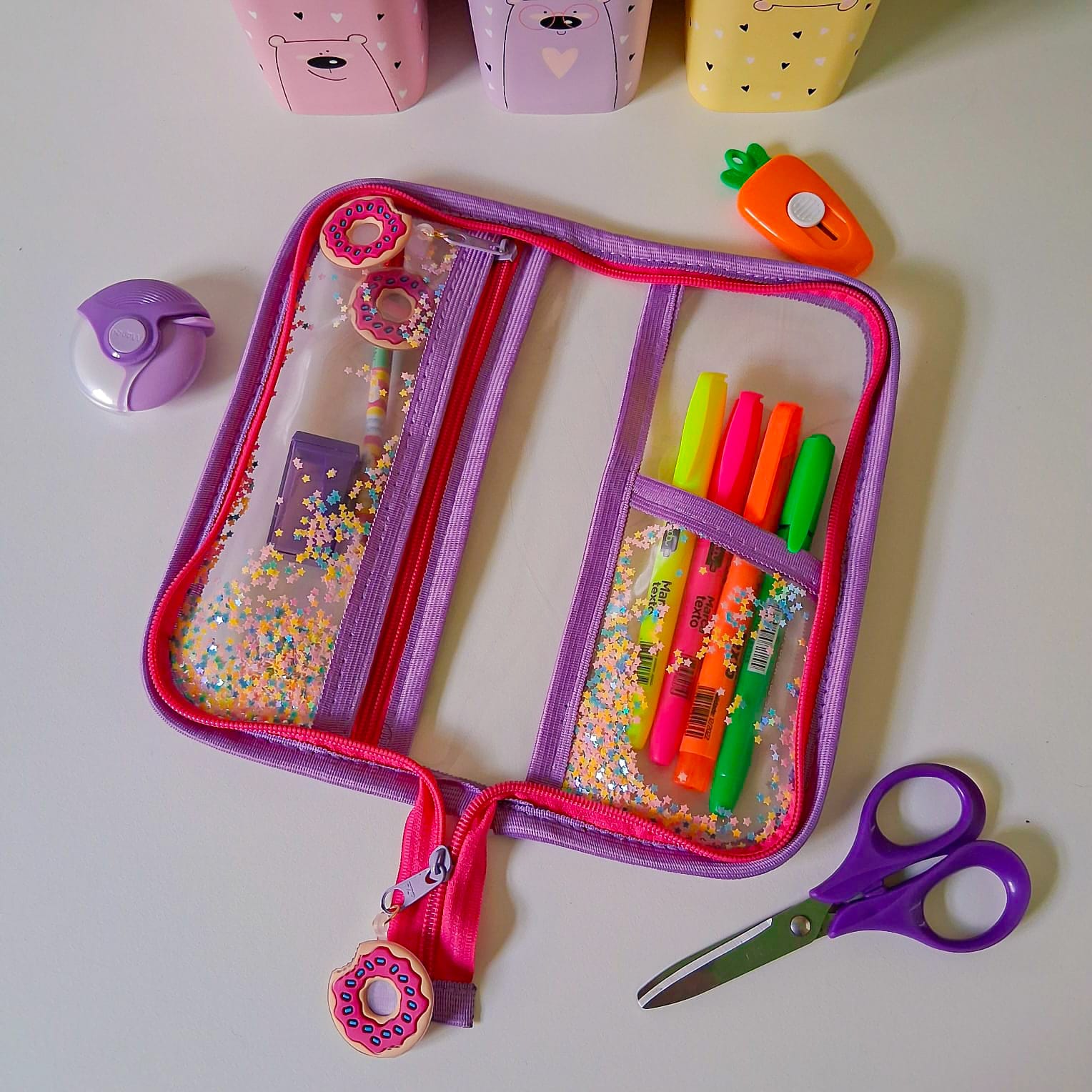 Perfeito para guardar lápis, canetas, marca-textos, adesivos e tudo o que você quiser ter por perto — seja na escola, no planner ou até no momento devocional com sua bíblia.